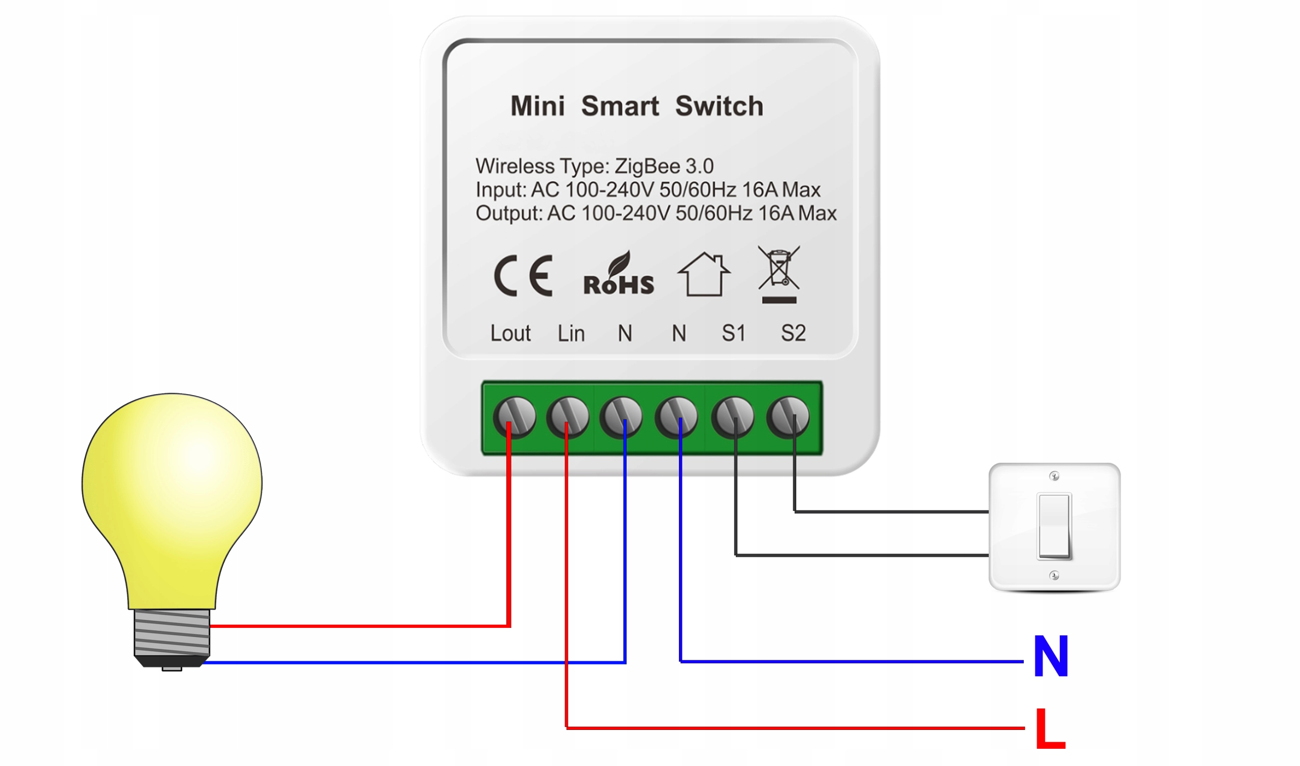 Один переключатель ZigBee 3.0 скрытого монтажа с реле мощностью 3500 Вт