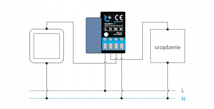 - IN - возможность подключения внешнего выключателя, вторая линия выключателя следует подключить к нейтральной линии 230 В, обозначенной символом N.