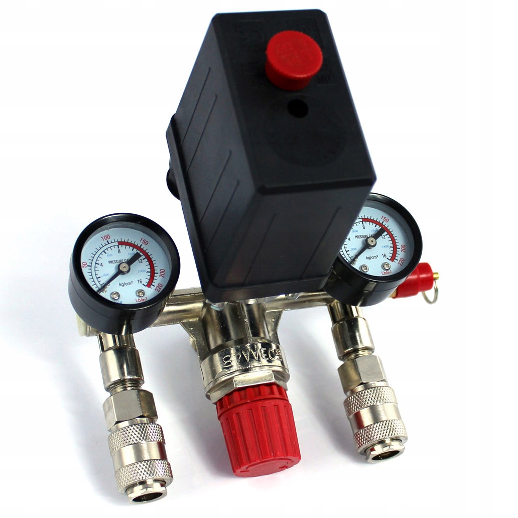 Высококачественное реле давления (прессостат) с коллектором, двумя быстроразъемными соединениями и манометрами, предназначенное для компрессоров давления 230В. Реле давления в основном используется в компрессорах производительностью 24л, 50л, 60л, 100л, 150л