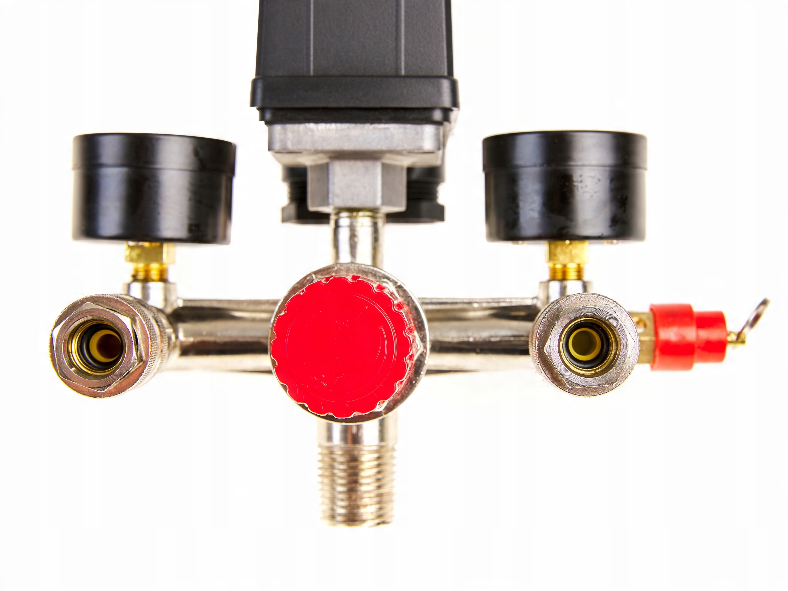 ✅РЕЛЕ ДАВЛЕНИЯ ДЛЯ КОМПРЕССОРА Реле давления (прессостат) с коллектором, двумя быстроразъемными соединениями и манометрами предназначено для компрессоров давления 230В.