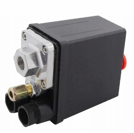 Реле давления компрессора. Переключатель автоматически отключает компрессор при достижении давления максимального значения и включает его при падении давления.