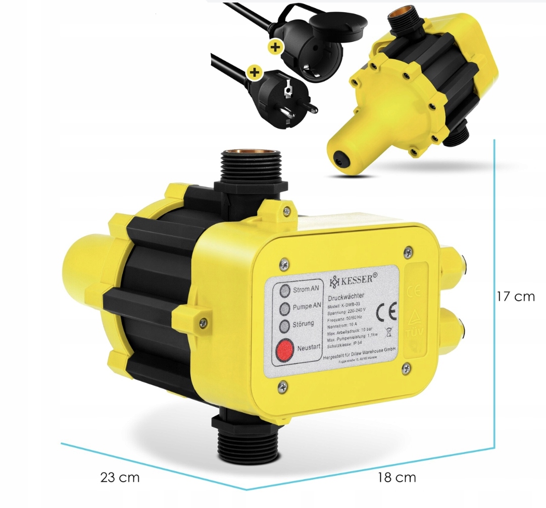 Реле давления для насоса KESSER 10 Bar | Автоматическое ВКЛ/ВЫКЛ | Контроль давления | С защитой от сухого хода | IP54