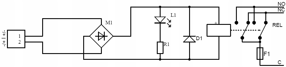 - Напряжение катушки реле: 10 В. ÷16 В постоянного/переменного тока (-/+5%),