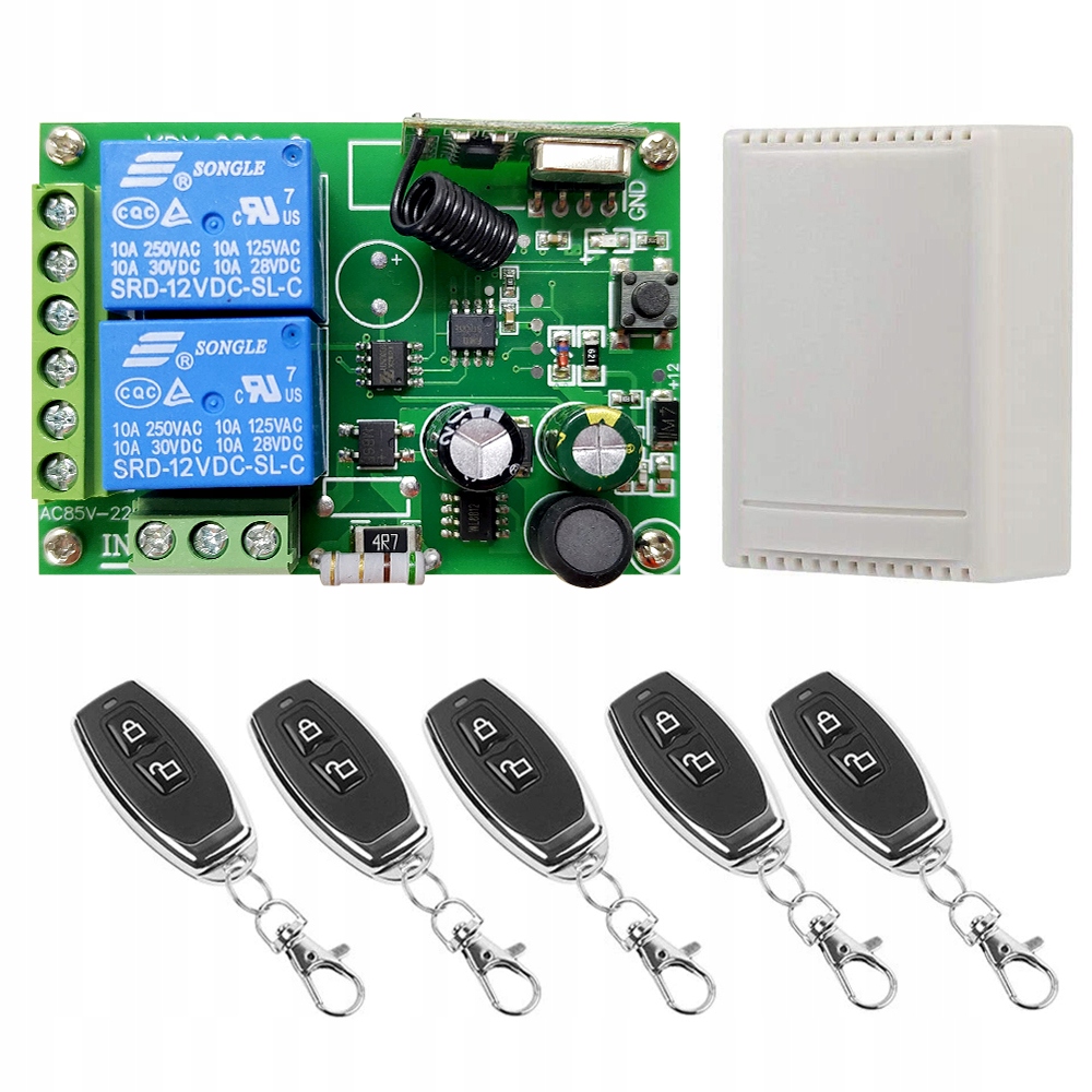 Релейный приемник переменного тока 85В-250В + 5 пультов 433МГц
