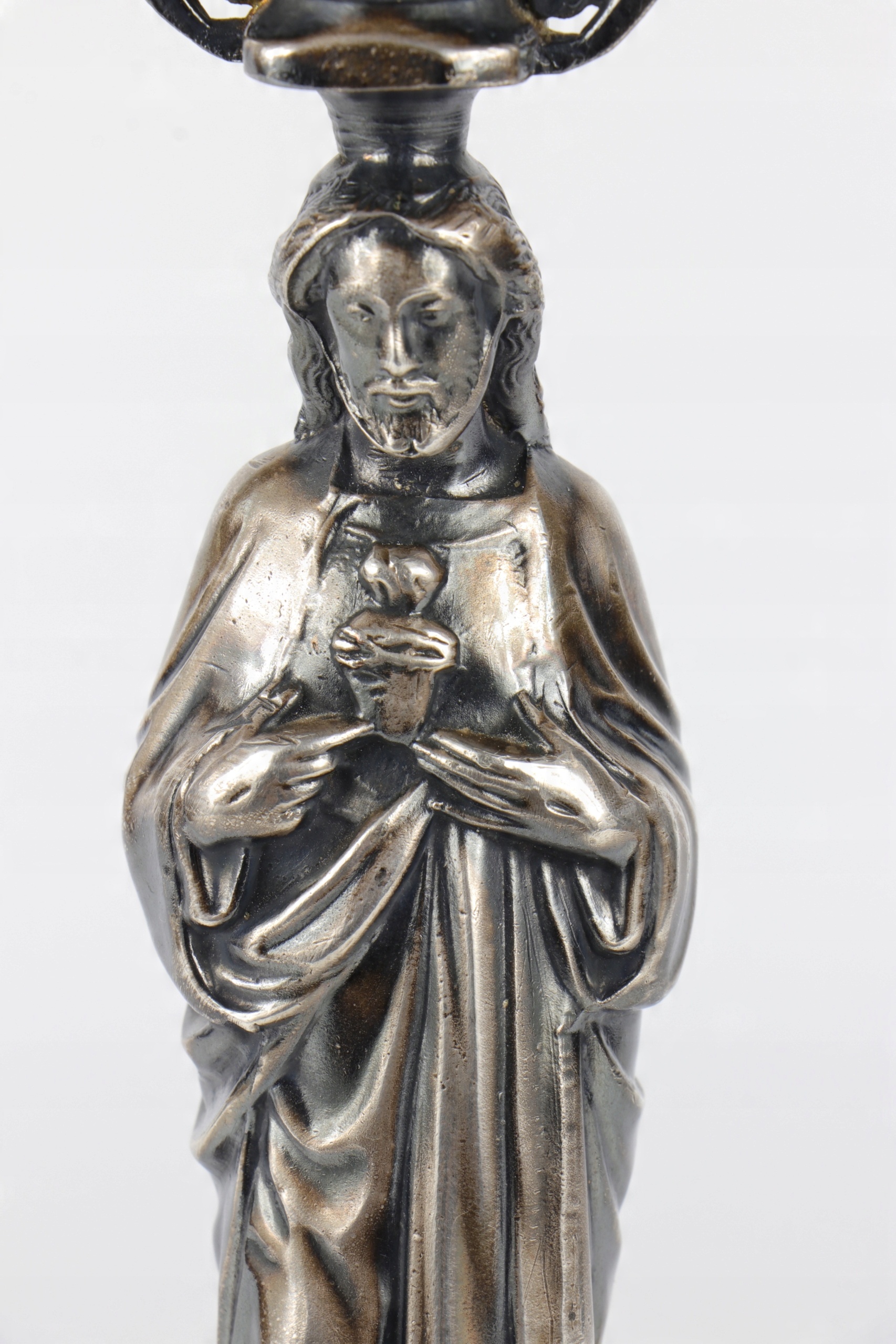интересный цинический фигурный подсвечник в форме Иисуса Христа. Очень хороший художественный кастинг. На другом аукционе я поднял аналогичный держатель фигуральной свечи с фигурой Божьей матери. Item