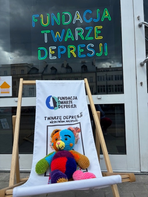 , покупая плюшевого мишка emoc+i, вы поддерживаете обвинения в лиц фонда депрессии - каждая Zloty от ее продажи предназначена для психологической консультации.