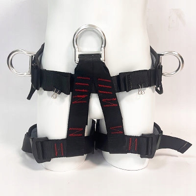 Ремень безопасности для скалолазания: по бокам ремня имеются 2 крючка для снаряжения и 2 D-образных кольца. Крючки для снаряжения очень прочные и на них легко повесить другое альпинистское снаряжение. Высокопрочные D-образные кольца защищают вас во время восхождения. Прочная черная пряжка позволяет быстро и легко регулировать набедренный и набедренный ремень.