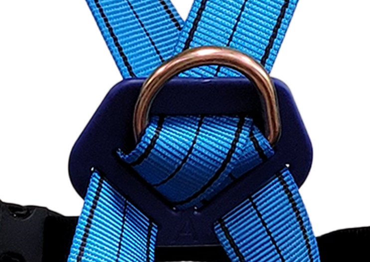 РЕМНИ БЕЗОПАСНОСТИ EN361: стальные спинные крепежные кольца и текстильные точки крепления. Благодаря высокой прочности они эффективно останавливают падение.