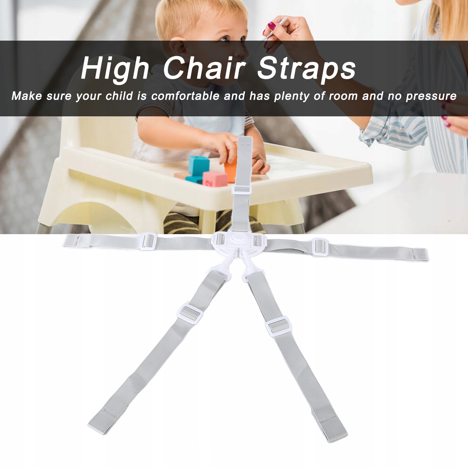 4. 5-точечный ремень безопасности подходит для большинства стульчиков для кормления, колясок, автокресел, трансформируемых ремней для трансформируемых детских сидений и любых аналогичных стульчиков для кормления с регулируемыми ремнями безопасности.