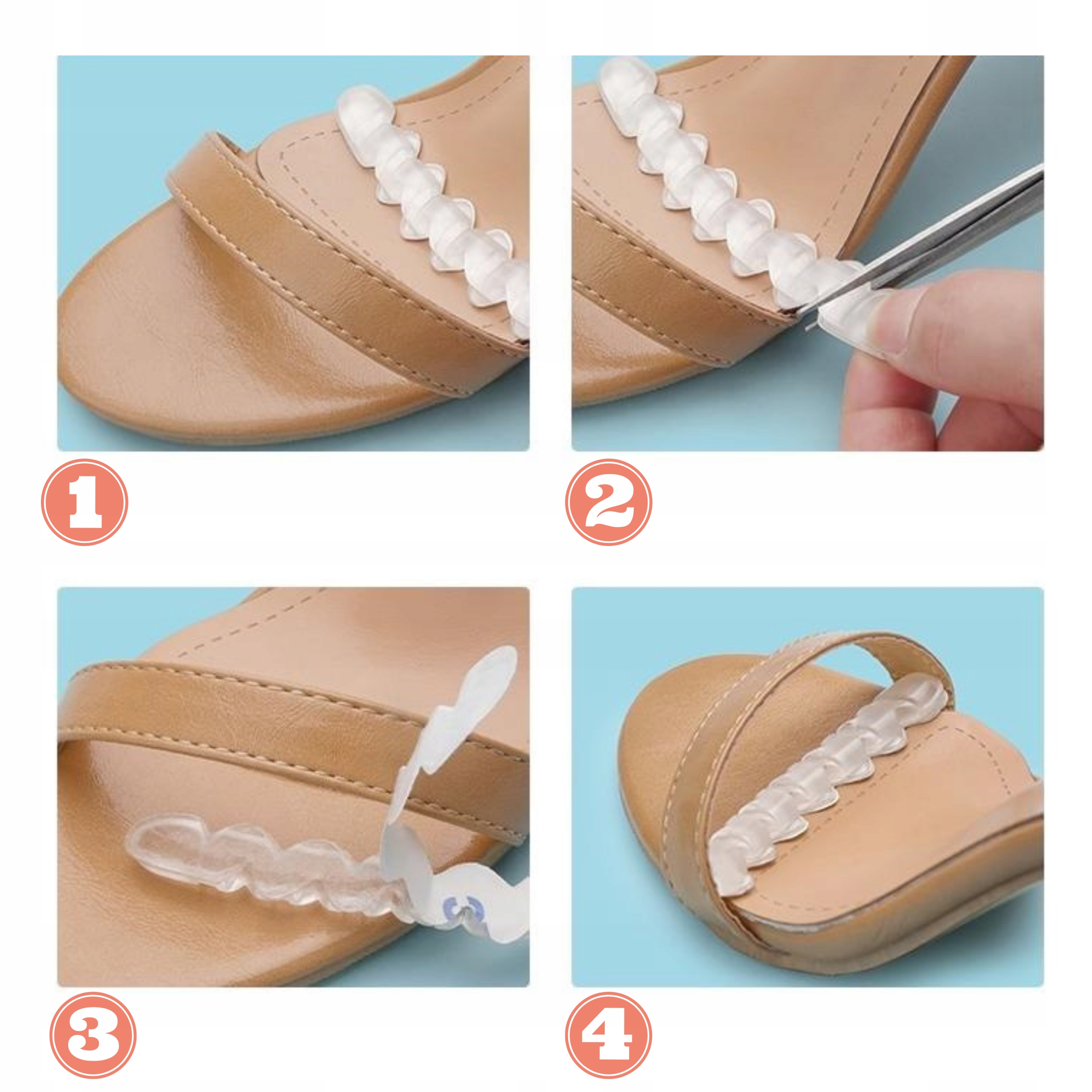 Благодаря силиконовой поверхности ремешки практически незаметны во время использования. Они обеспечивают дополнительный комфорт при ходьбе. Они не вызывают дополнительного потоотделения стопы и удерживают ее в нужном месте обуви. В открытой обуви, такой как шлепанцы, наши ноги выглядят намного лучше благодаря правильному положению в обуви.
