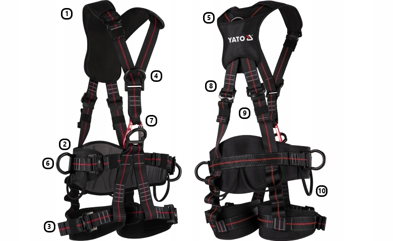 Все элементы средств защиты от падения YATO проходят действующие испытания. подтверждающие соответствие стандартам безопасности, и использование их в соответствии с инструкцией гарантирует 5 лет надежной эксплуатации.