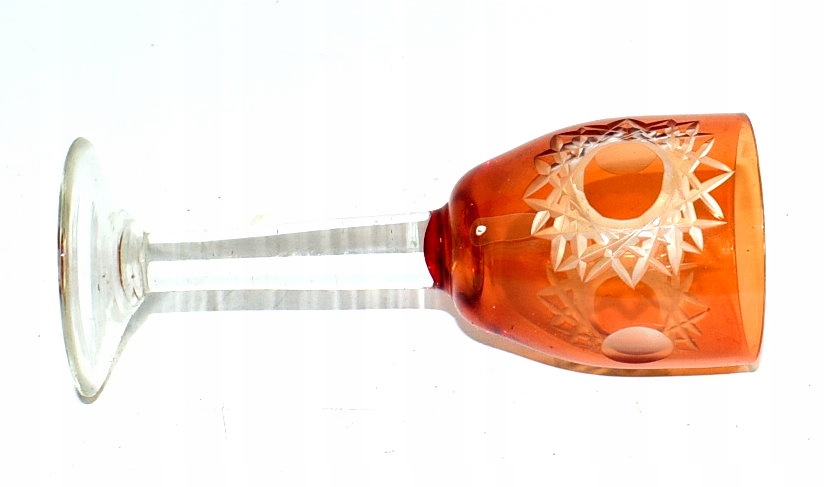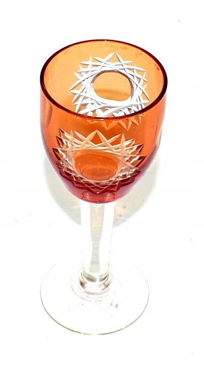Красивый старинный ремер, изготовленный из цветного многослойного хрустального стекла. Стакан интересной ручной огранки.