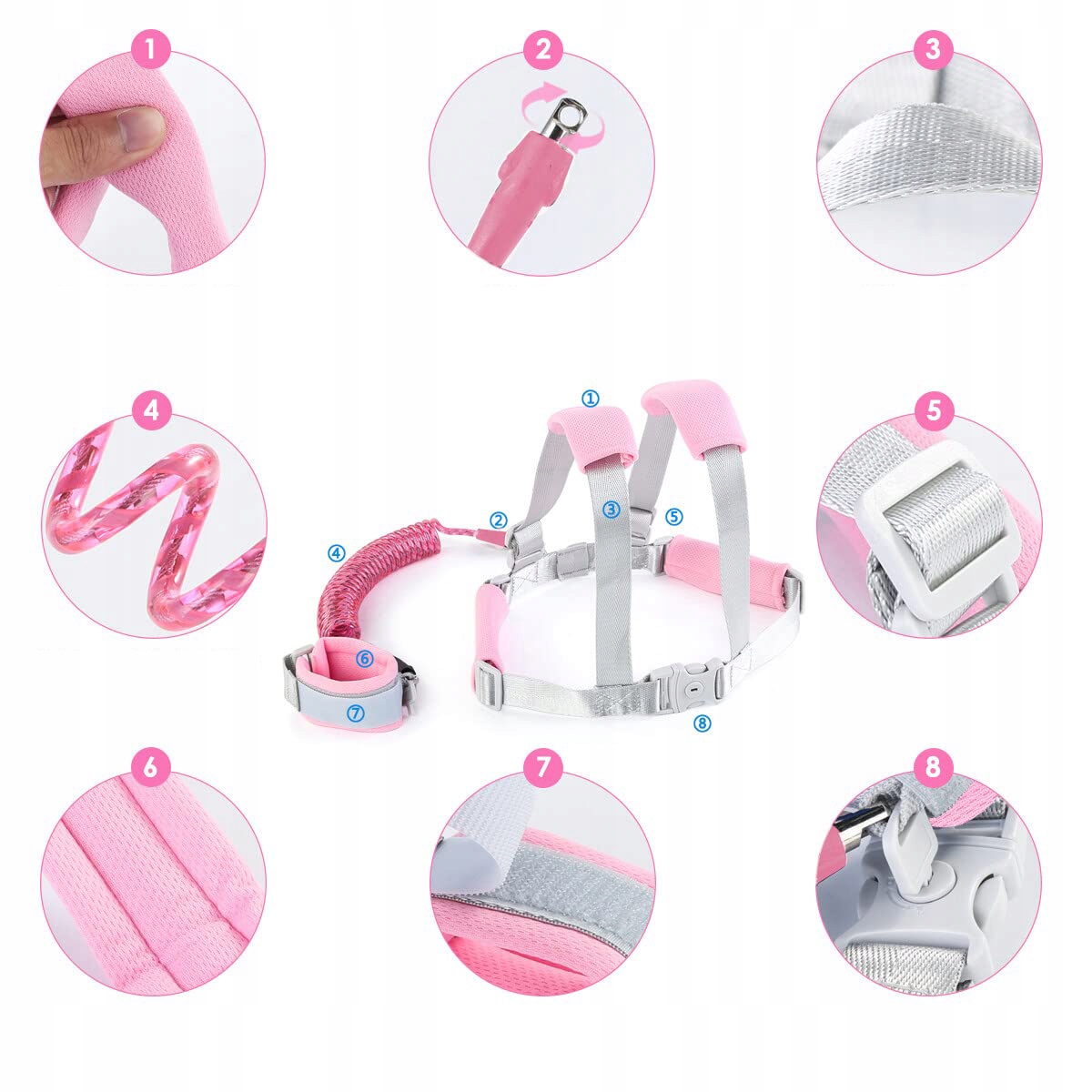 Ремінь безпеки для дітей від втечі та втрати рожевий