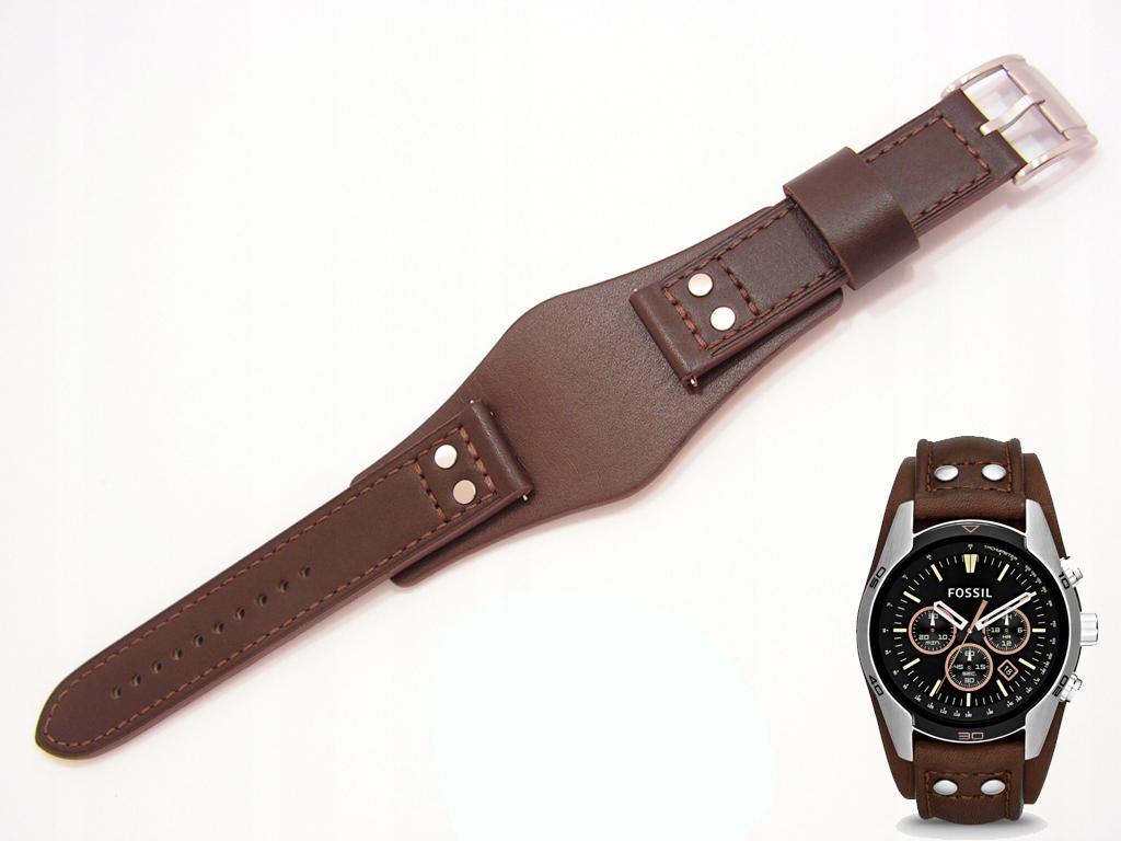 Оригинальный ремешок для часов Fossil Coachman для модели CH2891, из кожи средне-коричневого цвета, гладкий, матовый, с прострочкой по ремешку ниткой в цвет ремешка.