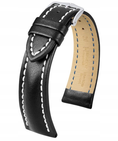 Красивый утолщенный ремешок часов Hirsch Heavy Calf изготовлен из итальянской телячьей кожи высочайшего качества. Ремешок водонепроницаем, а кожа устойчива к царапинам. Толстая строчка придает ремню спортивный характер. Ремешок премиум-класса для брендовых часов. Ремень имеет оригинальную стальную пряжку Hirsch.