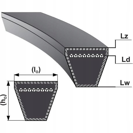 Клиновые ремни имеют в поперечном сечении форму равнобедренной трапеции или трапеции. Такая форма обеспечивает высокую силу трения при низком натяжении ремня. Это также позволяет хорошо работать со шкивами небольшого диаметра, около 40÷80 мм, благодаря требуемому малому углу обхвата. В настоящее время клиновые ремни изготавливаются двух типов: закрытые ремни или ремни со скошенными сторонами. Несущие волокна в покрытых ремнях лежат между резиновым сердечником и резиновым покрытием, при этом весь ремень обернут защитной тканью, называемой оберточной или покровной тканью, которая увеличивает жесткость ремня в поперечном направлении. Сердечником является несущая часть ремня, которая размещается в пазу шкива через обертку, а оболочка представляет собой растягивающийся слой, охватывающий несущие волокна снаружи. Ремни со срезанными сторонами, называемые также ремнями с открытыми боковыми поверхностями, не имеют покрытия. Жесткость в направлении движения ремня при одновременной гибкости ремня в направлении движения достигается благодаря форме волокон наполнителя, поперечной направлению движения. Волокна молекул материала – чаще всего эластомера – расположены фронтально к боковым поверхностям. Это обеспечивает высокую износостойкость боковых поверхностей. Дополнительно боковые поверхности ремня полируются, что повышает их плавность и точность. При этом форма сечения не претерпевает существенных деформаций при изгибе на шкиве, поэтому поверхность контакта не уменьшается. Проскальзывание ремня небольшое, а передаваемая мощность выше при аналогичных размерах по сравнению с покрытым ремнем.