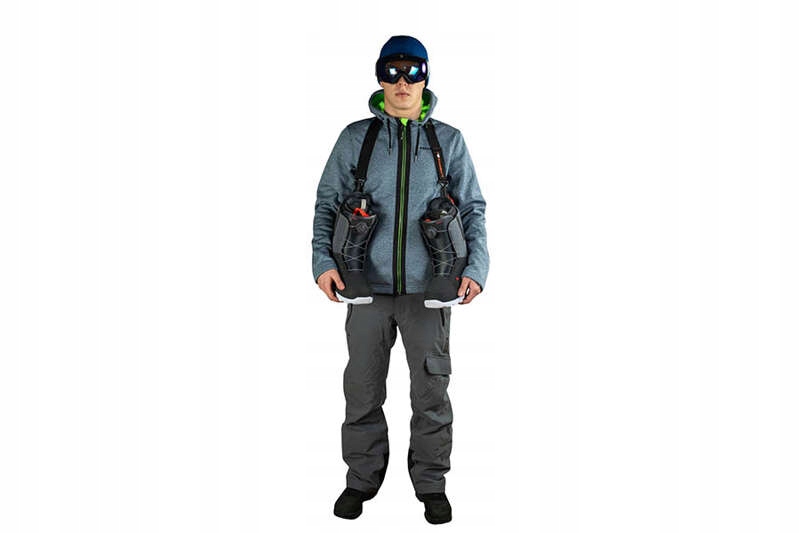 Ремень для переноски лыж Snowsport Prestige 4 в 1 — это очень простой способ носить лыжи. Вы можете спрятать их в кармане во время вождения. Это многофункциональное решение. Во-первых, лыжи, застегивающиеся на липучку, можно носить на плече, освободив руки. Другой вариант – отсоединить ремешок от застежки-липучки. Благодаря этому мы можем захватить лыжи ремнями, прикрепить к ремню лыжные ботинки с помощью специальных ручек и перекинуть их через плечо. Мы также можем использовать липучки только для крепления лыж во время транспортировки.