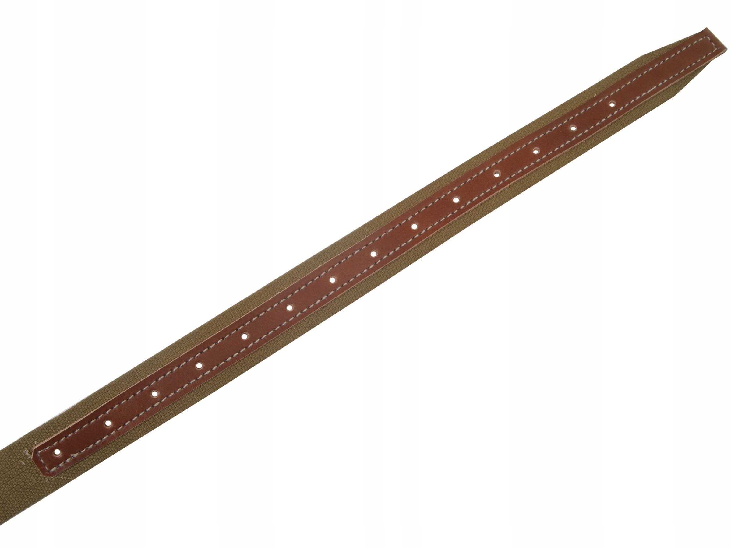 Идеальная копия основного ремня эконом-класса. 35. Ремень изготовлен по советским техническим условиям, из натуральной хлопчатобумажной ткани шириной 35 мм, производства России, с использованием натуральной отечественной кожи растительного дубления, окрашенной в коричневый цвет. Металлические элементы оцинкованы в соответствии с эпохой, а ремень прошит натуральной нитью. Рекомендуем, это однозначно лучшая и правильная реплика на рынке! Nestof® собственного производства!