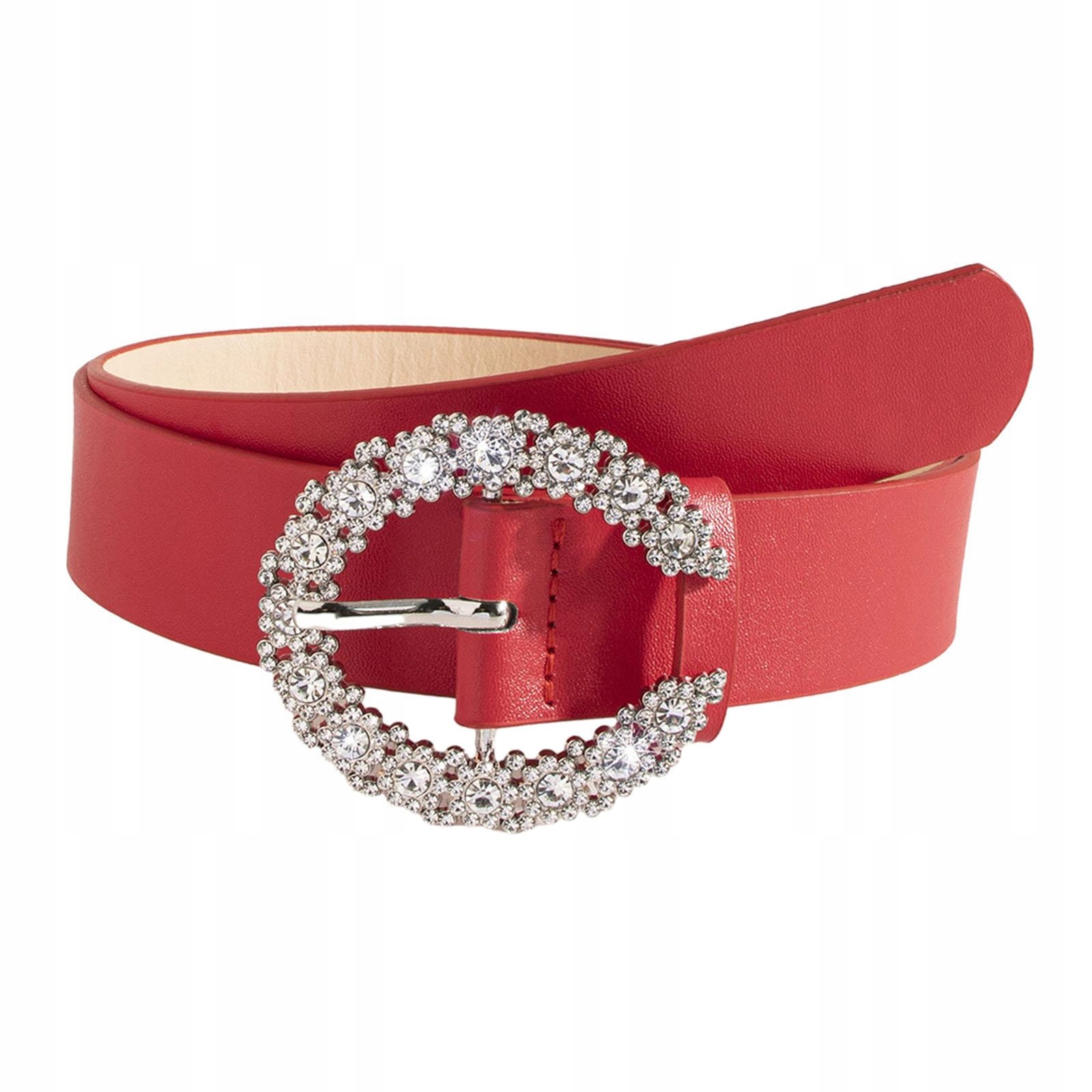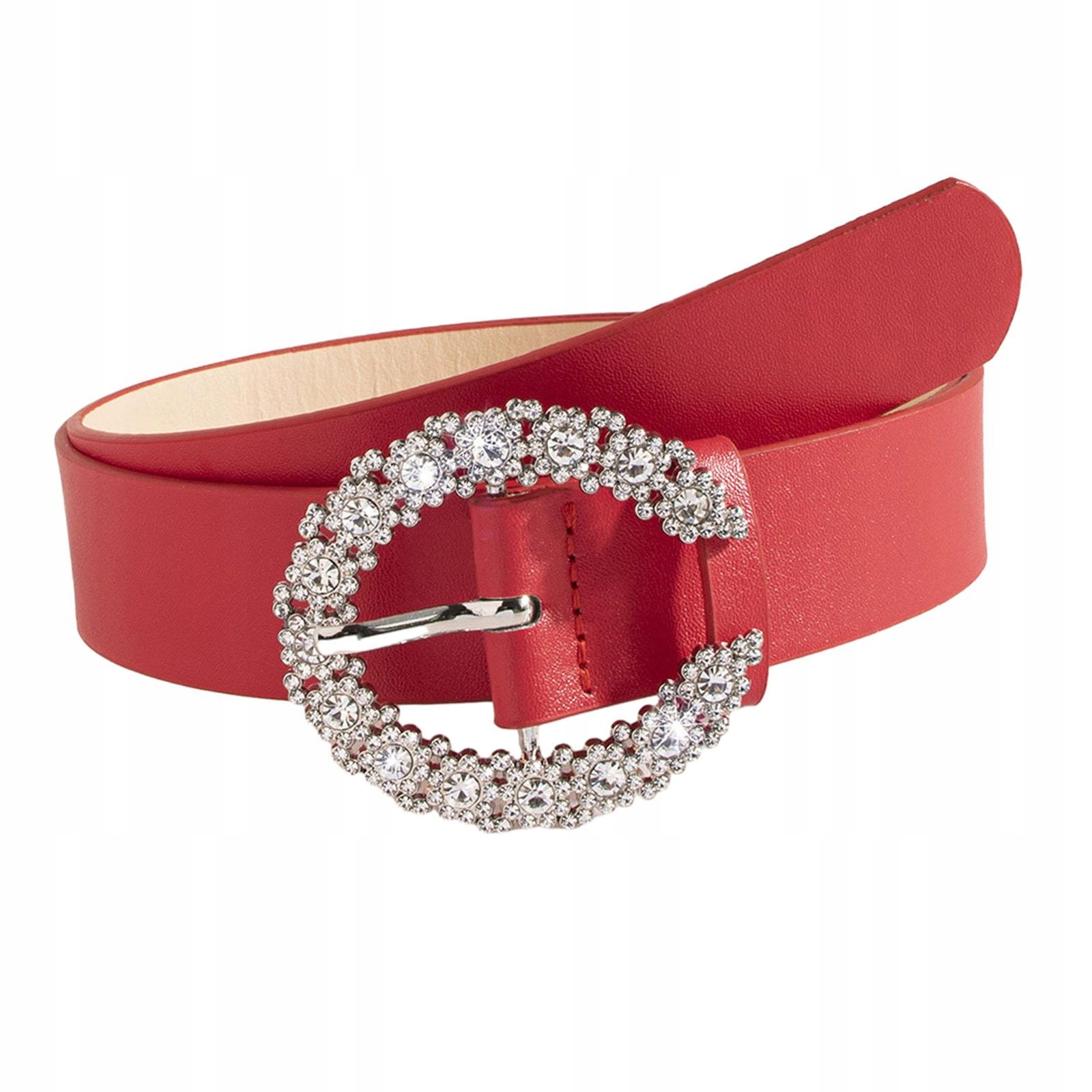 Модний ремінь із штучної шкіри зі стразами C із пряжкою для жінок, червоний
