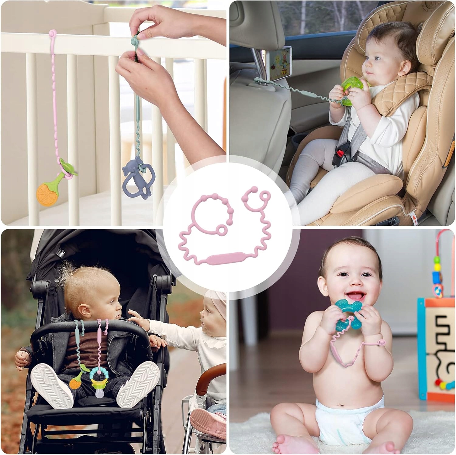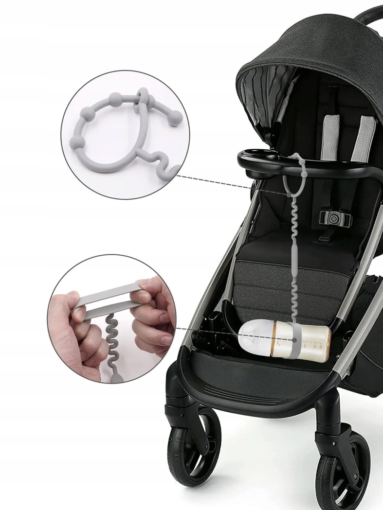 Легко крепится к коляскам, стульчикам для кормления, автокреслам и запястью ребенка, чтобы развлекать ребенка во время еды, смены подгузников, купания, слез и путешествий.