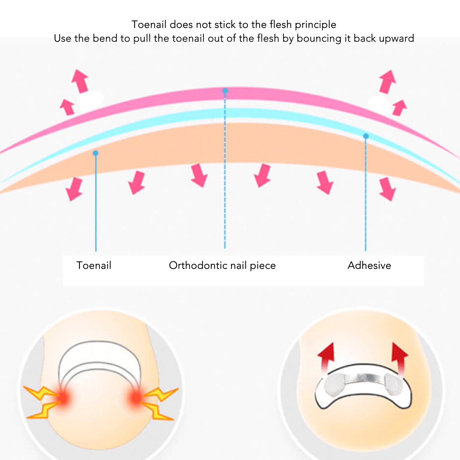 Особенности: 1. Двойной эффект: полосы коррекции вросших ногтей изготовлены из комбинации двойного эффекта растяжного металла с формой и силиконовой памятью.