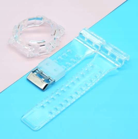 Ремешок 2В1 + чехол Casio G-SHOCK GA-100 GA-110 GD-100 G-8900 прозрачный (черная надпись)