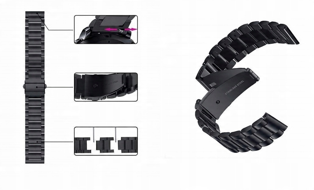 Элегантный, качественный браслет из высококачественной нержавеющей стали. Ремешок полностью функционален и может быть отрегулирован в соответствии с индивидуальными потребностями пользователя.