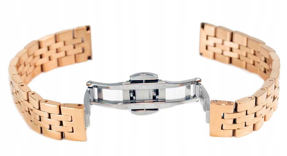 Цельный стальной браслет для часов с застежкой-бабочкой из розового золота