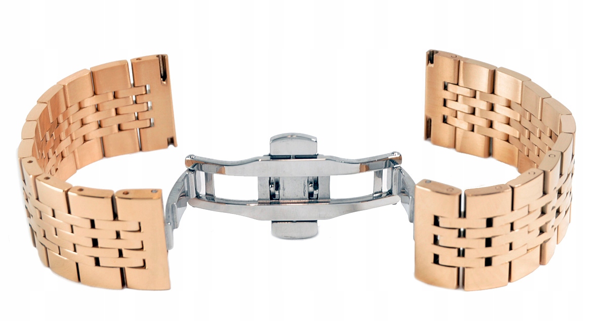 Цельный стальной браслет для часов с застежкой-бабочкой из розового золота
