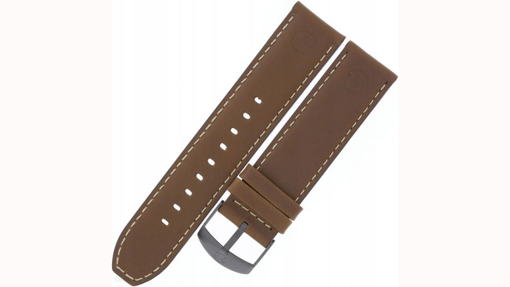 Оригинальный коричневый кожаный ремешок, прошитый светлой нитью, дополнен графитовой металлической пряжкой с логотип EXPEDITIOM для часов TIMEX T49990. Логотип EXPEDITION выбит на ремешке в обеих верхних частях.