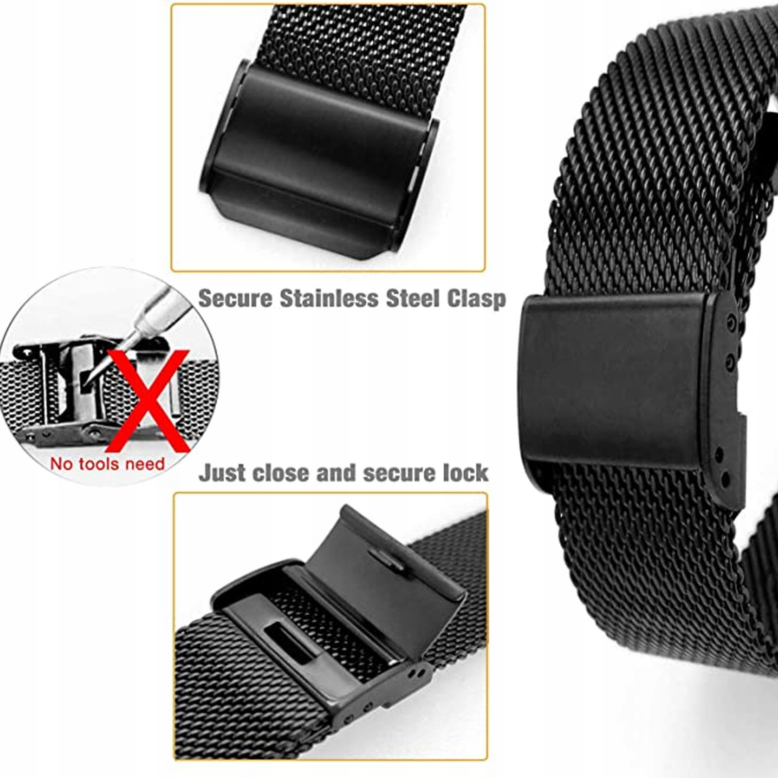 4. Нежный дизайн: ремешок изготовлен из тонкой сетки из нержавеющей стали, идеально отполирован и не имеет острых краев, дышащий и удобный в ношении.