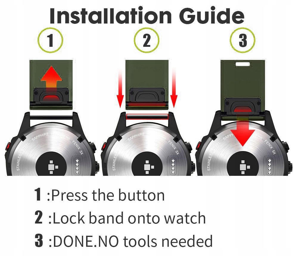 Ремешок точно повторяет оригинальную версию Garmin. Производитель, как и Garmin, позаботился о деталях и подготовил продукт высшего класса. Удовлетворение от использования гарантировано.
