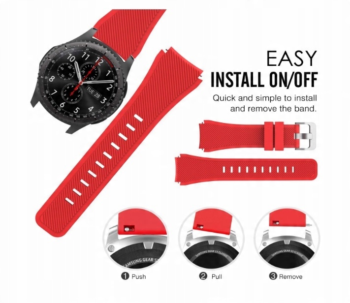 - Совместимость с вышеупомянутыми часами Samsung и другими часами с 22-миллиметровым креплением на телескопических штифтах.