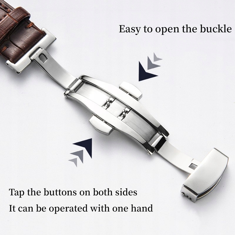 КОЖАНЫЙ РЕМЕШОК ДЛЯ ЧАСОВ С ЗАКРЫТКОЙ-БАБОЧКОЙ, ЧЕРНЫЙ 20мм