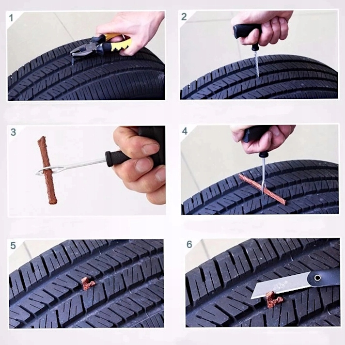 Комплект не предназначен для ремонта повреждений боковин шины. Комплект предназначен для экстренного ремонта. Достигнув пункта назначения, отправляйтесь в ближайшую шиномонтажную мастерскую, чтобы профессиональный шиномонтажник проверил повреждение.