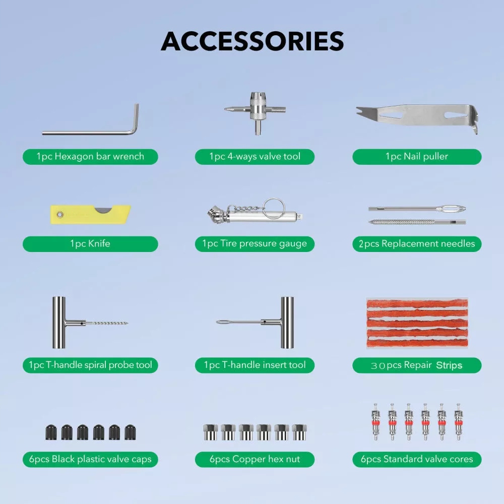 Изготовлен из высококачественная сталь и сплав цинка с достаточной твердостью, чтобы удовлетворить ваши потребности в временном ремонте шин.
