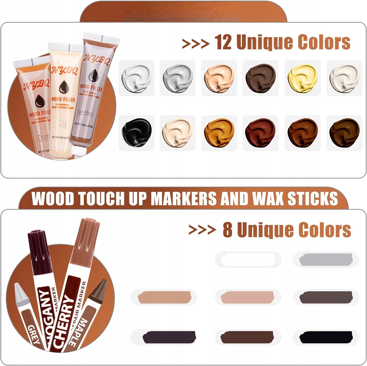 Этот полный набор для ремонта дерева — идеальное решение для всех любителей DIY и людей, которые хотят сохранить свою деревянную мебель, панели или полы в идеальном состоянии. В наборе присутствуют маркеры и шпатлевки, позволяющие эффективно устранить любые повреждения.