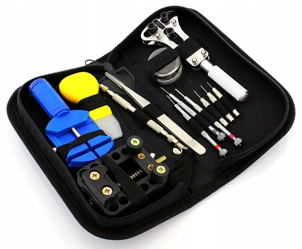 Полный набор часовых инструментов в эстетичном футляре на молнии.