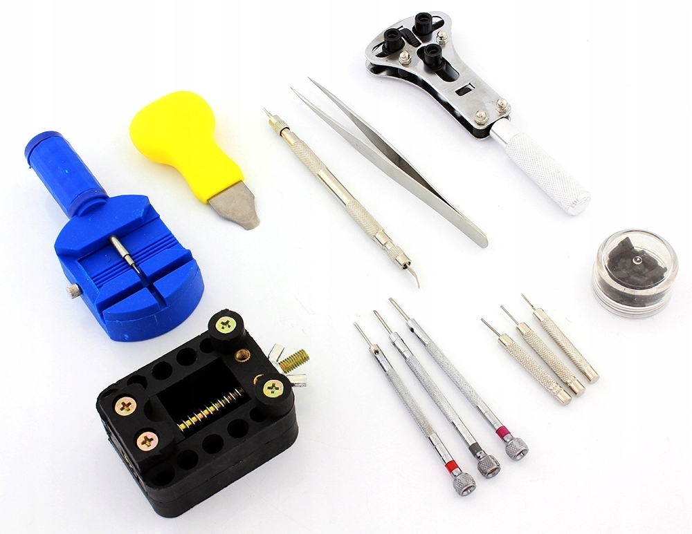 Идеально подходит как для профессионального использования, так и для мелкого, любительского ремонта часов, благодаря огромному количеству инструментов.