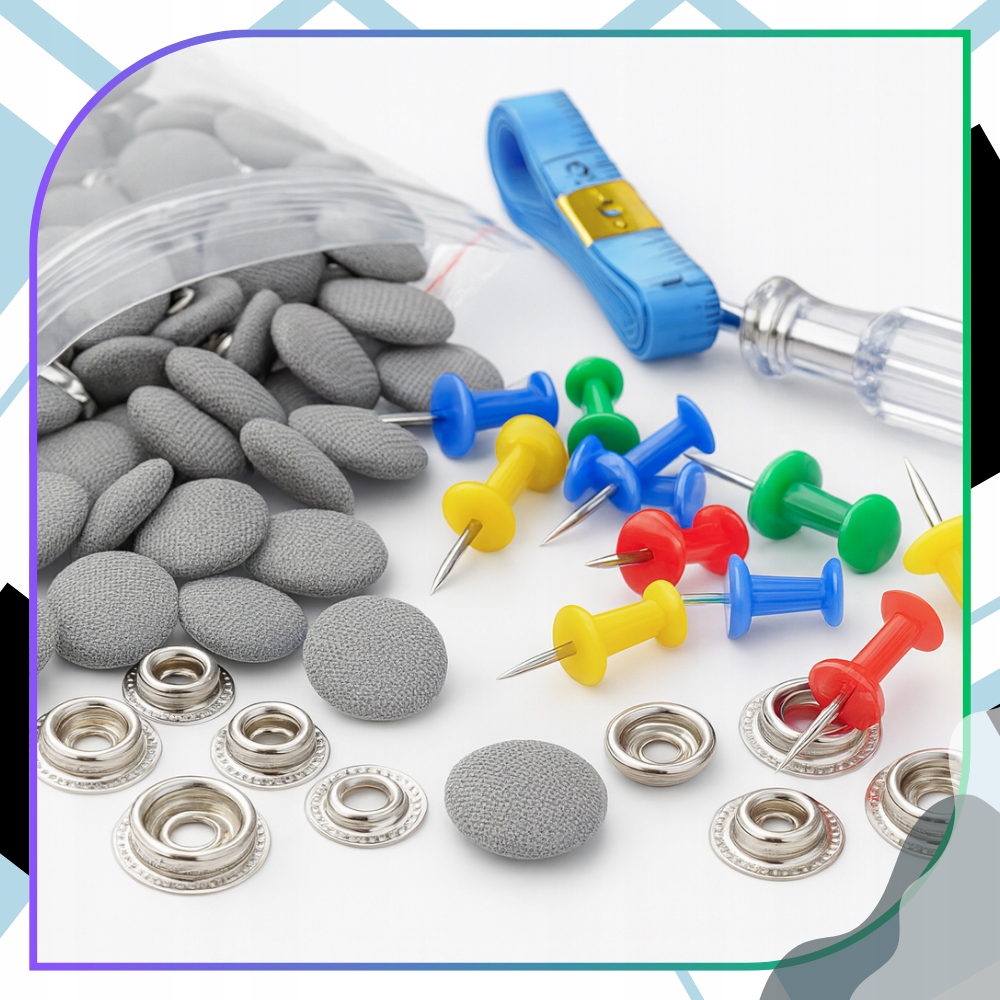 ✅ Содержимое набора: 60 серых ремонтных заклепок, 60 цветных булавок, отвертка и рулетка.