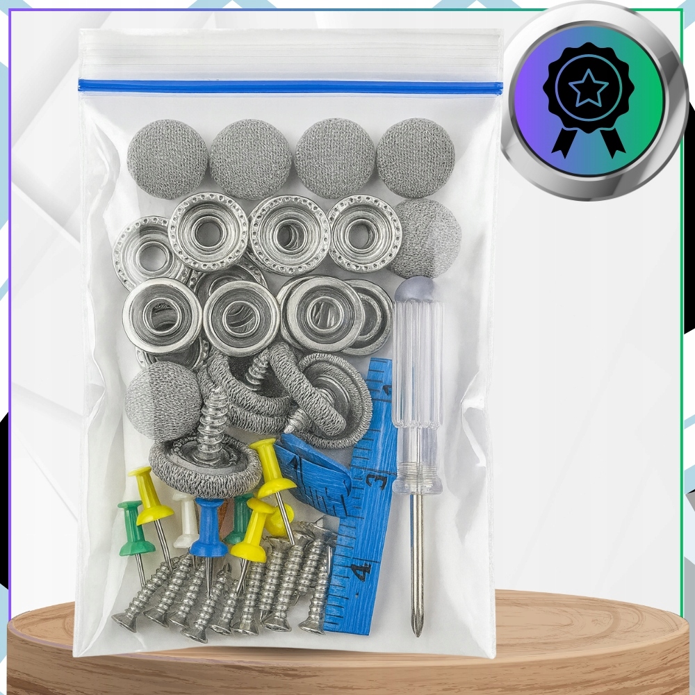 ✅ В набор входит целых 60 серых заклепок из сетчатой ткани и металла, 60 разноцветных булавок, а также отвертка и рулетка. Благодаря этому у вас есть все необходимое для самостоятельного и долговечного ремонта.