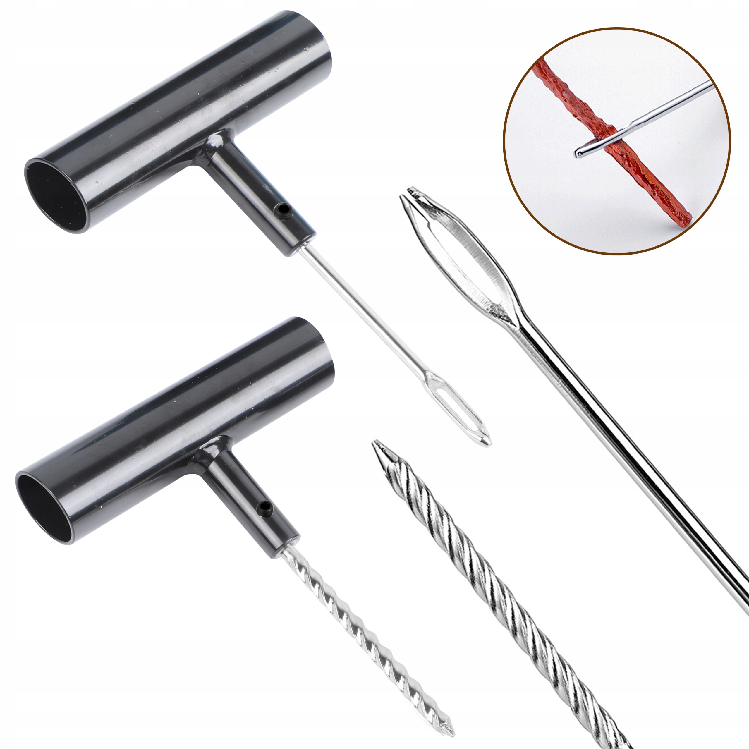 Спиральный рашпиль и Игольчатые инструменты для вставок изготовлены из закаленной стали, подвергнутой пескоструйной обработке, что обеспечивает повышенный срок службы. Эти инструменты устойчивы к грязи и мусору, их достаточно просто протереть, и они выдерживают множество ремонтов шин.