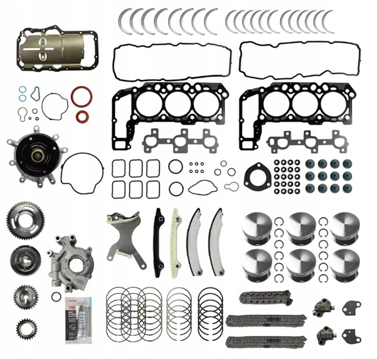 РЕМОНТНЫЙ КОМПЛЕКТ ДВИГАТЕЛЯ (ПРОКЛАДКИ ГОЛОВКИ, ПОРШНИ, КОЛЬЦА, ПОДШИПНИКИ, ГРМ, МАСЛЯНЫЙ НАСОС, ВОДЯНОЙ НАСОС, НИЖНИЕ ПРОКЛАДКИ ДВИГАТЕЛЯ) ДЛЯ АВТОМОБИЛЕЙ С ДВИГАТЕЛЕМ 3,7 Л: