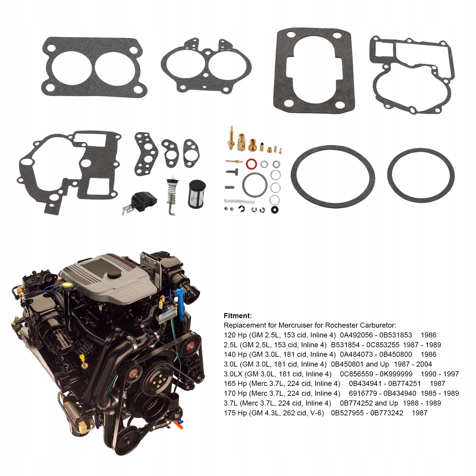 2. Применимость: Специально разработанный ремонтный комплект подвесного карбюратора, идеальная замена Mercruiser Marine 3.0L 4.3L 5.0L 5.7L.