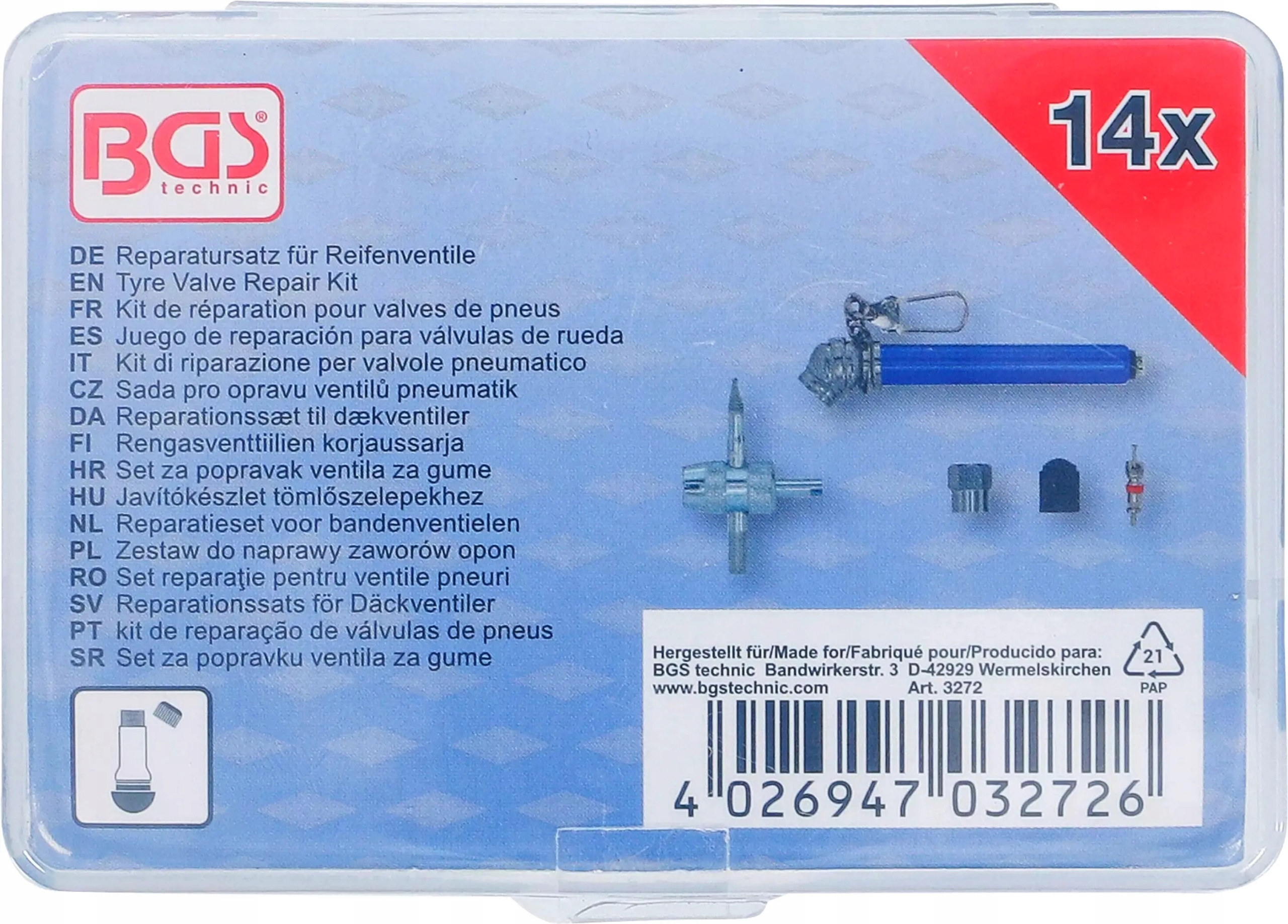 Просматривая «Комплект для ремонта резьбы вентиля колеса, 14 шт. BGS-Германия», вы можете быть уверены, что данный товар из каталога «Ремонтные комплекты» будет доставлен из Польши и проверен на целостность. В цене товара, указанной на сайте, учтена доставка из Польши. Внимание!!! Товары для Евросоюза, согласно законодательству стран Евросоюза, могут отличаться упаковкой или наполнением.