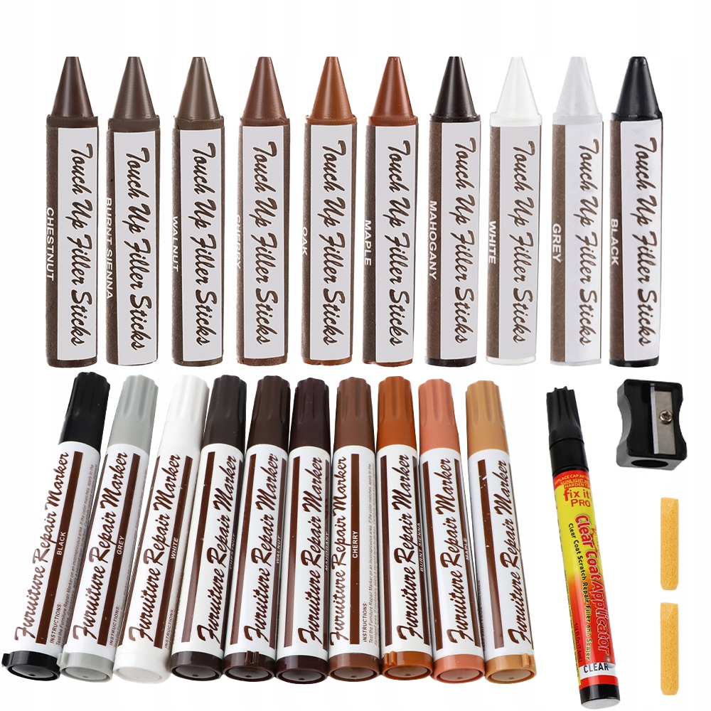 Основа в виде полутвердого воскового мелка легко наносится, а все это дополняется маркером в того же цвета, содержащие масляные чернила, устойчивые к стирке, что гарантирует длительный эффект. Богатая цветовая гамма, входящая в комплект аж 10 различных: дуб, вишня, красное дерево, клен, орех, черный означает, что вы можете использовать его для мебели светлых, темных и средних цветов.
