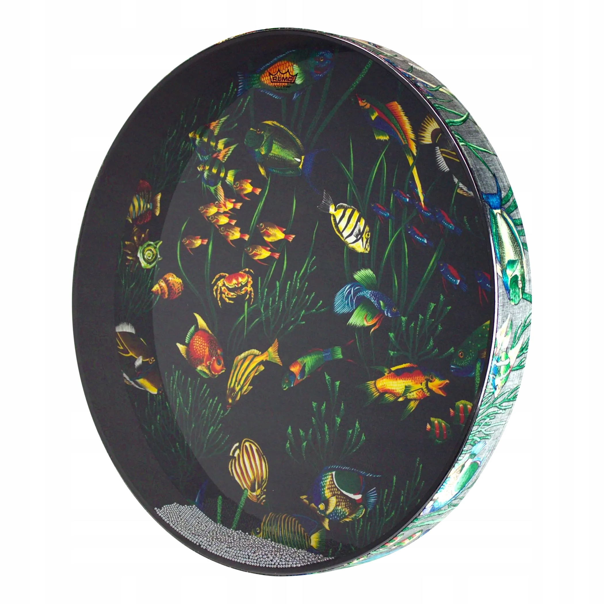 Remo ET-0222-10 — это Ocean Drum диаметром 22 дюйма, предназначенный для создания звуков, напоминающих шум волн. Он полезен в музыке, звукотерапии, медитации, образовании и в качестве звукового эффекта в записях. Внутри корпуса инструмента используются стальные шарики, которые при движении барабана создают характерный звук океана. Отделка «Рыбная графика» придает ему эстетичный и тематический вид.