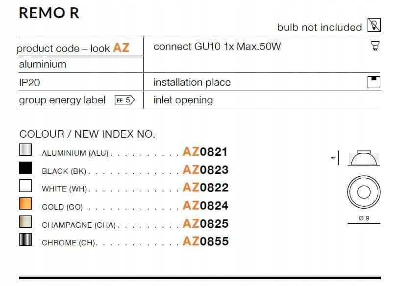 Отражатель REMO R AZ0821 - Azzardo, декоративный элемент, позволяющий разнообразить потолочный светильник REMO, доступен в трех цветовых вариантах: черном, белом и серебристом. Благодаря широкому ассортименту отражателей у нас есть много возможностей смешивать цвета в соответствии с нашими потребностями.