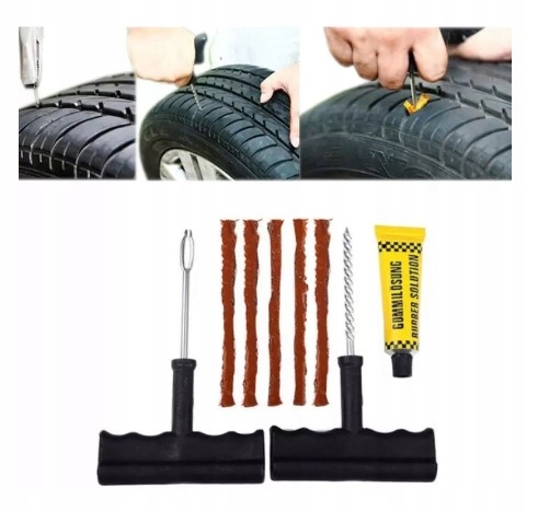 Ремонт не требует никаких усилий – поврежденная шина ремонтируется без необходимости ее демонтажа с транспортное средство. Вы можете справиться практически с любыми условиями. Все упаковано в блистер, что гарантирует долгий срок службы набора и устойчивость к влаге и загрязнениям. В комплект входит до 5 бутиловых шнуров, 12 г клея и 2 ремонтных шила. В комплект входит подробная инструкция по ремонту на польском языке.