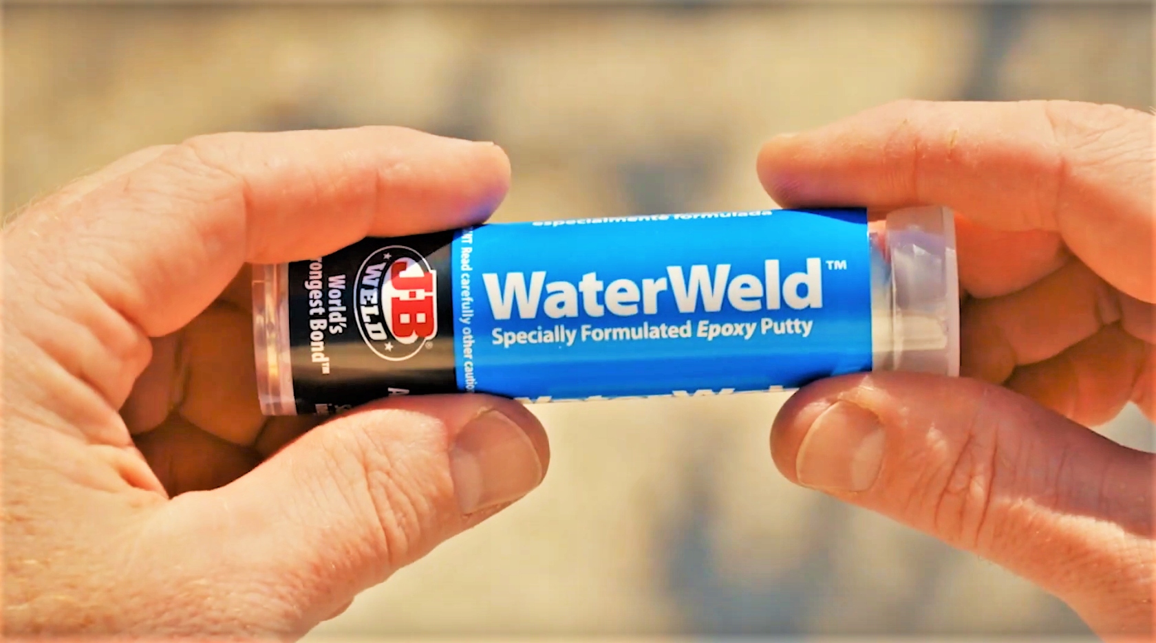 WaterWeld заткнет или герметизирует утечки, а также заделает дыры и трещины практически в любом предмете. Идеально подходит для ремонта канализации, топливных баков, ванн и душевых кабин, бассейнов и гидромассажных ванн, лодок и резервуаров для питьевой воды; работает даже под водой. После затвердевания его можно сверлить, нарезать резьбу, пилить, шлифовать и красить. Время схватывания WaterWeld составляет 15–25 минут, а затвердевает в течение часа. WaterWeld затвердевает до почти белого цвета, имеет предел прочности на разрыв 1300 фунтов на квадратный дюйм и устойчив к температурам до 300 ºF.